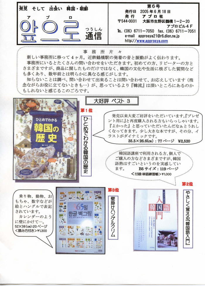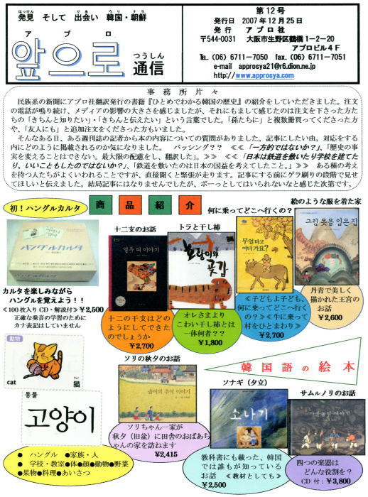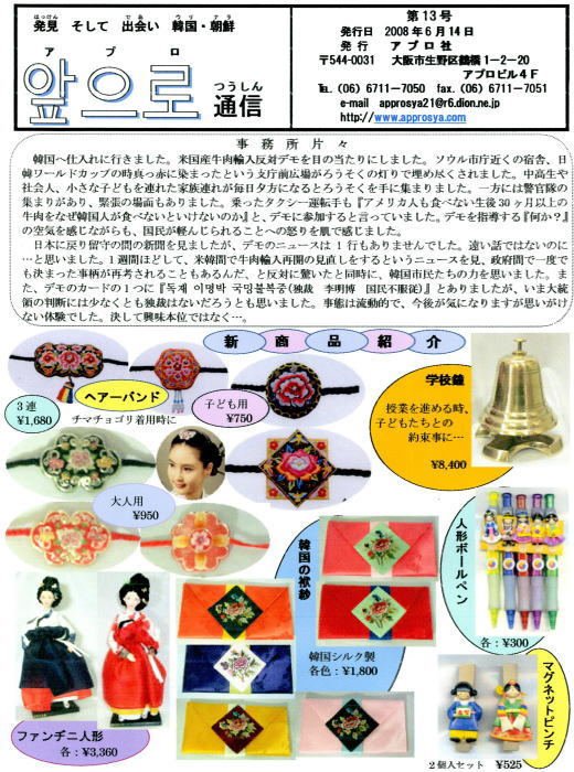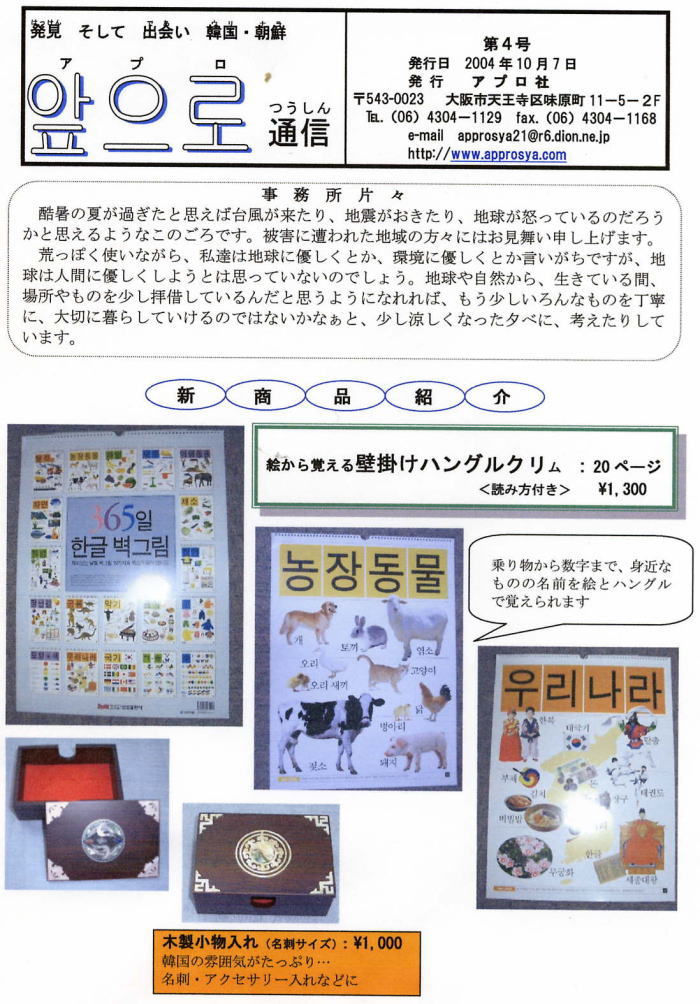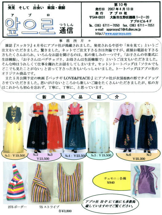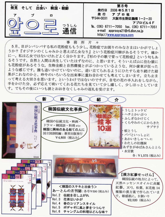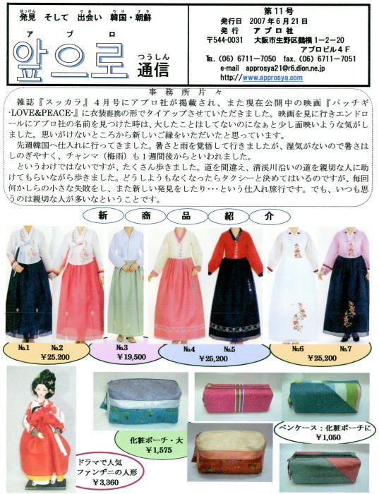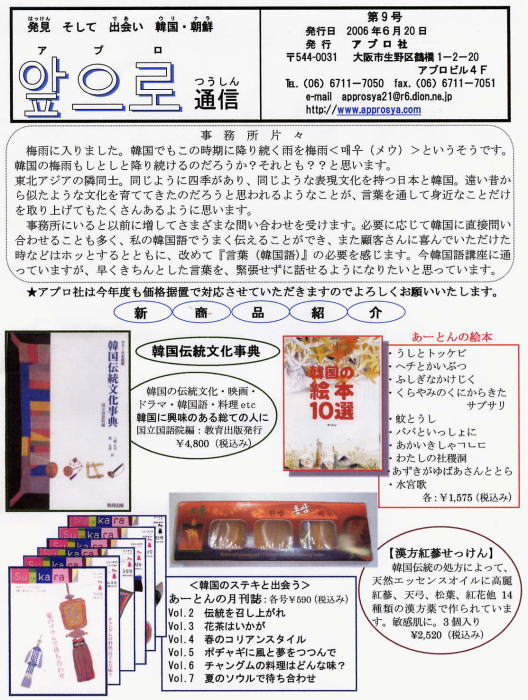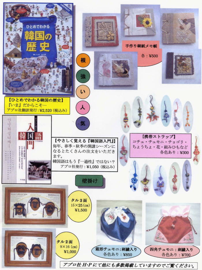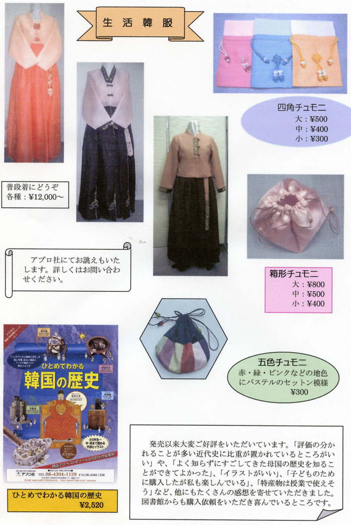 アプロ社は、主に小・中・高校に在籍する在日の子ども達、そして日本人の子ども達に韓国・朝鮮の事をよりよく知ってもらう為に、楽器・教材・衣装・書籍・教具などを制作・販売しています。