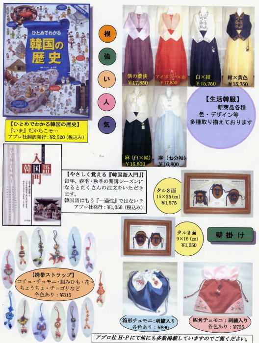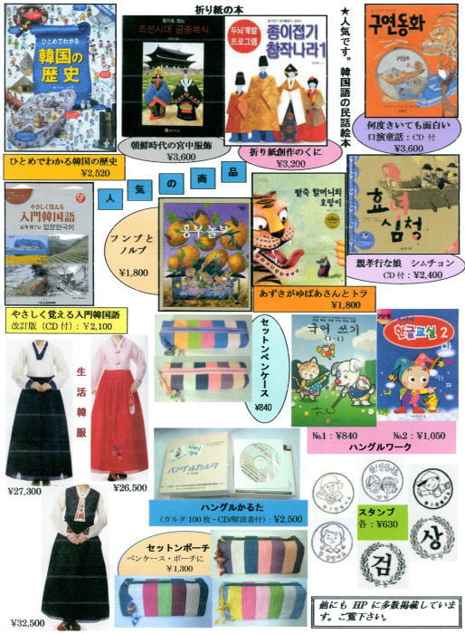 韓国・朝鮮の民族楽器、民族衣装、小物、教材や絵本など数多く取り揃えております。