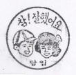 韓国語で『よくできました!』の文字が入ったスタンプ 検・賞・★のスタンプ ●確認のために押印しています。御了承ください。